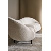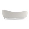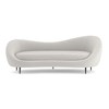 Curvy and generously sized, Formosa is 94.5 inches of comfort. The wraparound sofa has a plush, asymmetrical traveling back that produces a highly sinuous shape. Fully-upholstered in lustrous woven chenille with a mélange of steel blue/grey flecks, this bean-shaped piece rests on delicate conical metal legs in Piano Black.