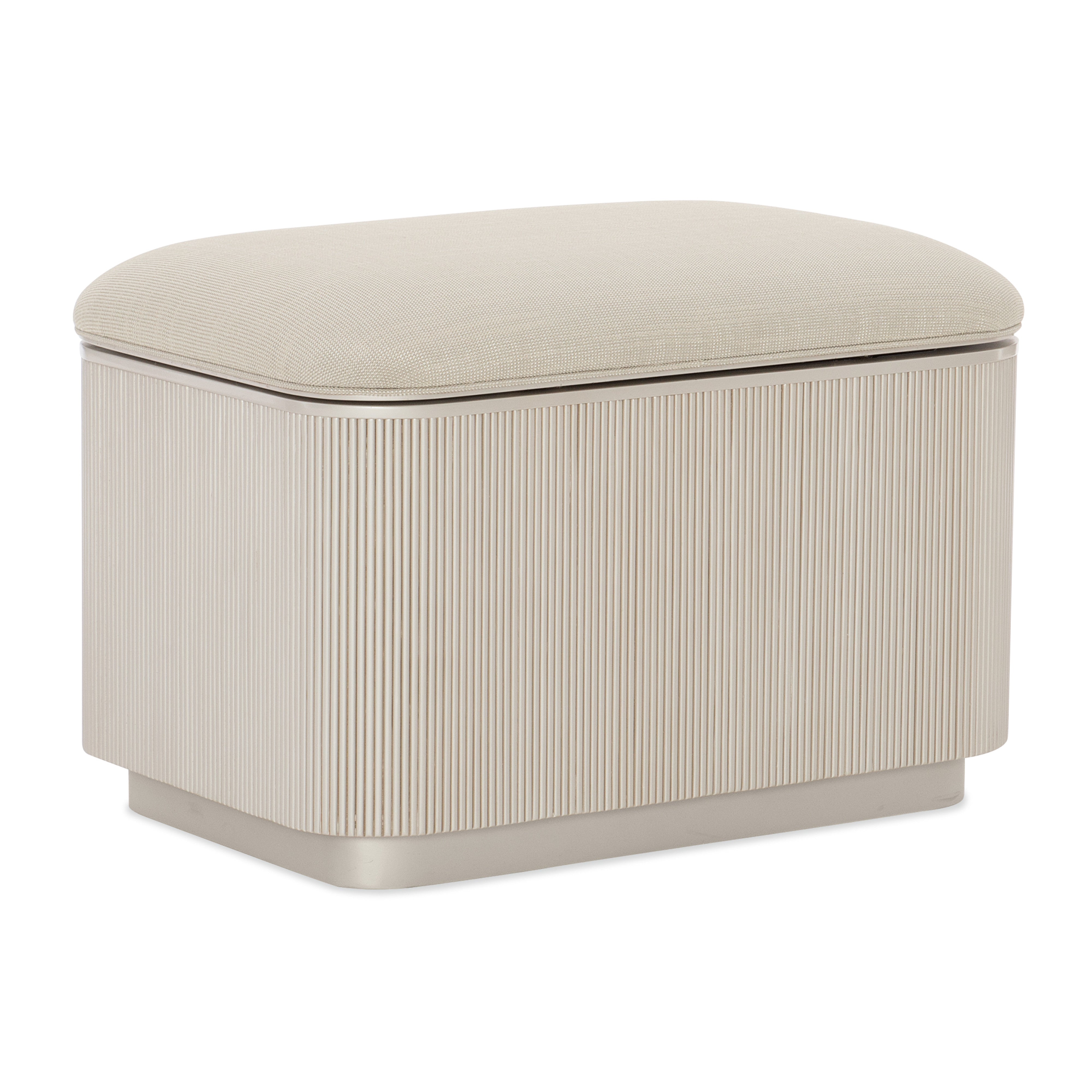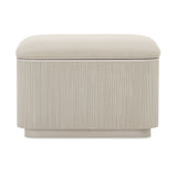 Storage has never felt so fashionable than with this luxe storage ottoman. Its lovely fluted exterior is highlighted in a Matte Pearl finish that will complement any room’s décor scheme while a recessed base adds an element of distinction. Upholstered in a sophisticated neutral fabric, its top seat cushion opens to reveal multi-level storage. Boasting form and function, it’s hard to say which is more valuable. Use it on its own or as a pair in nearly any room for a touch of signature style.