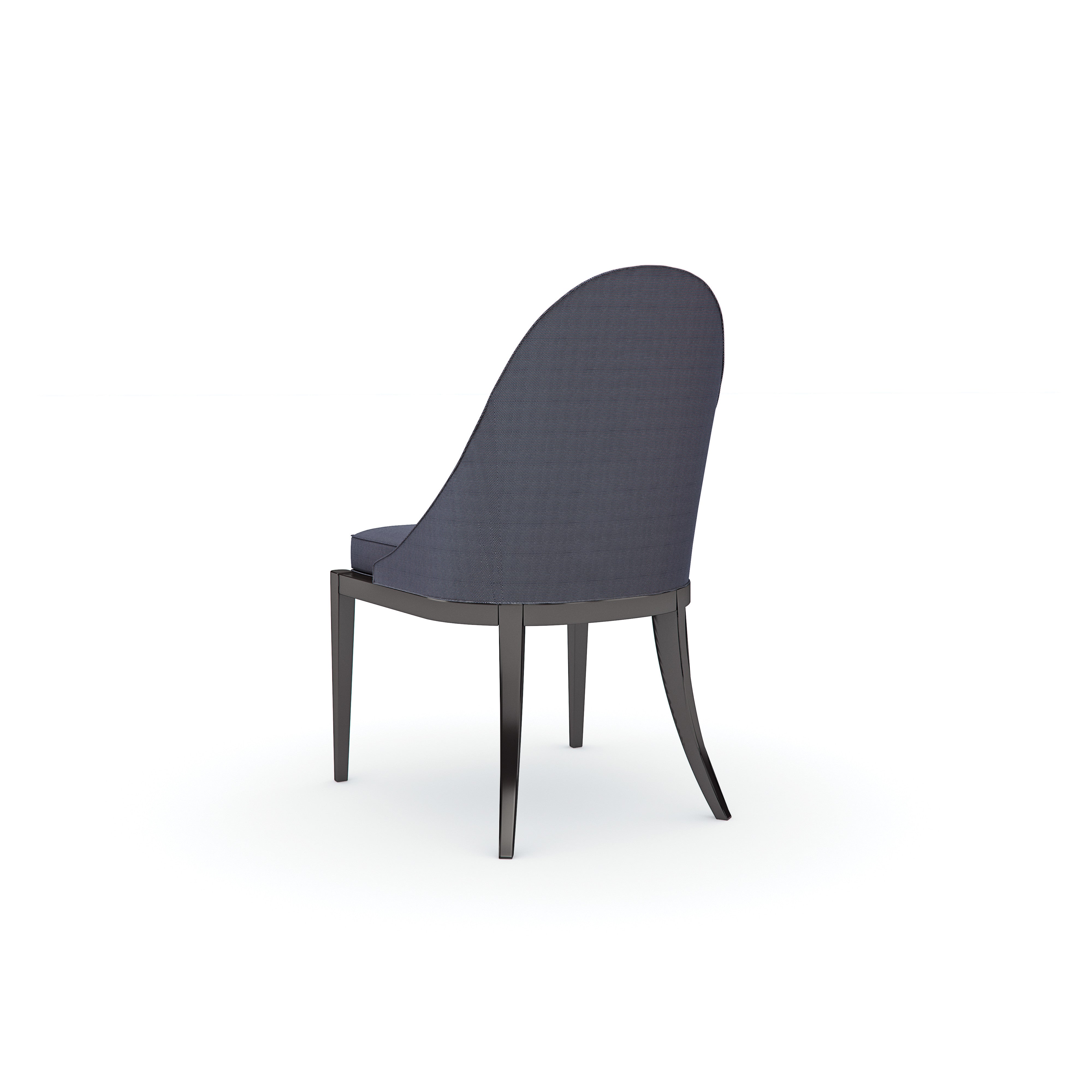 With a comforting curve along the back, this modern side chair introduces a style that’s unpretentious, yet elegant and refined. Accented by welt, its simple silhouette is beautifully balanced on an exposed wood frame and tapered legs in Dark Chocolate. Expertly tailored in a lightly textured navy performance fabric that’s durable and easy to clean. Style with a rectangular dining table to counter clean lines, or play up a table in the round. Pair with a desk to elevate working from home.