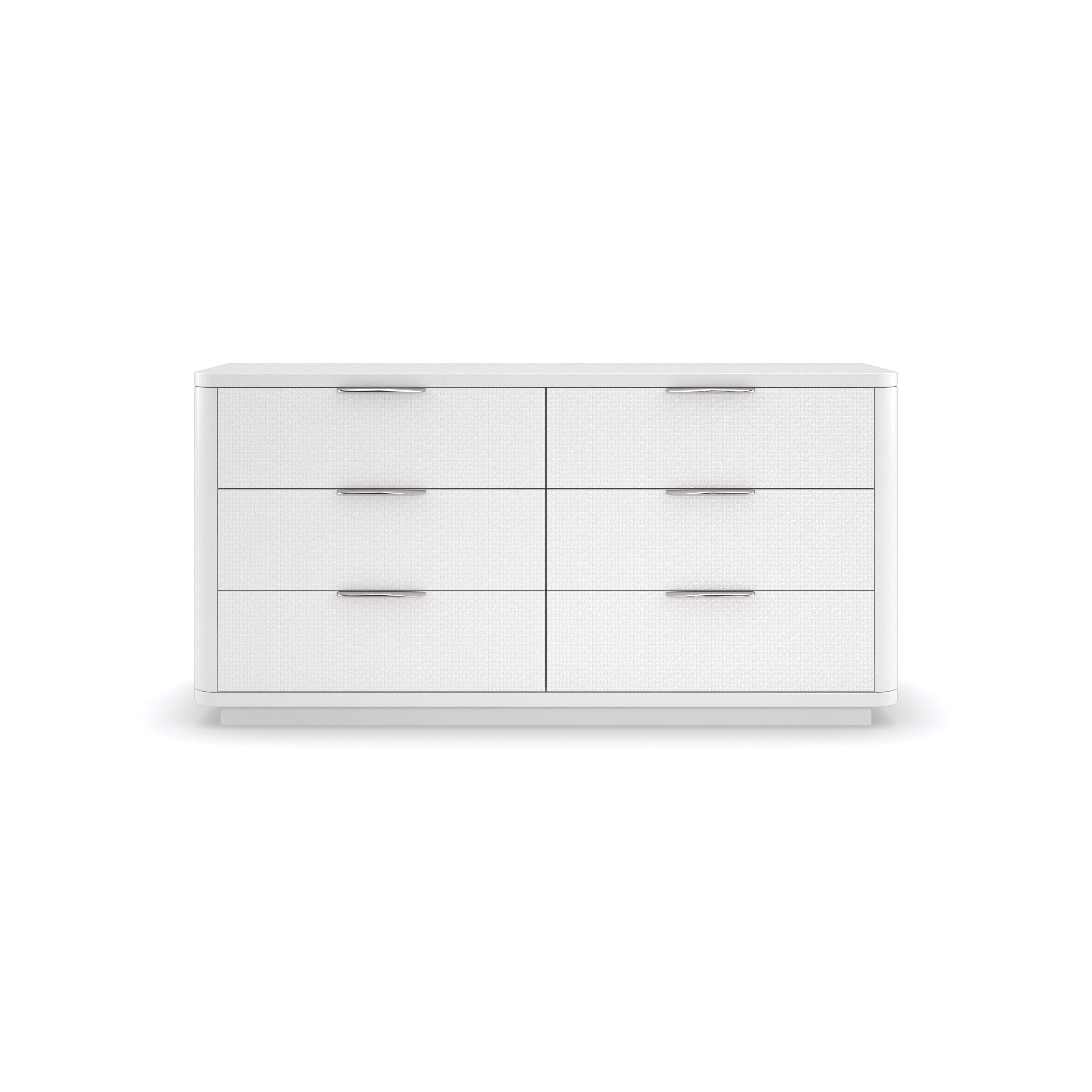 With gently rounded edges and a welcoming texture, this spacious six-drawer dresser is quietly captivating in a Cloud White finish. Carved drawer fronts feature a woven mini-tile motif and finger-cup pulls to keep the look clean. Style with our In Touch and Touch Base bedside tables to create a calming retreat for yourself or guests.